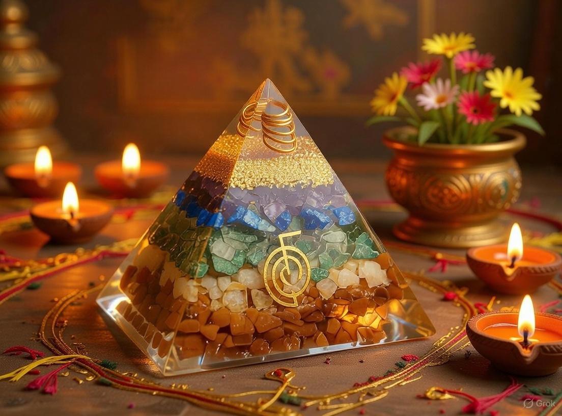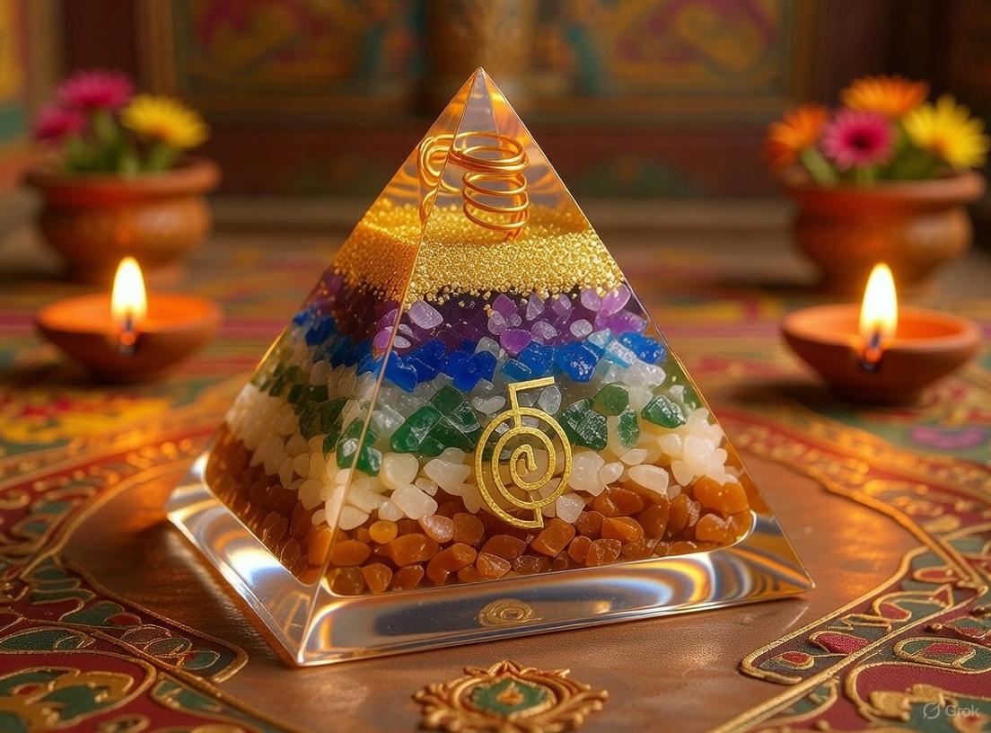 The pyramid's intricate layered construction—blending resin, metals, and crystals—acts as a dynamic orgone accumulator. It generates and amplifies Positive Orgone Radiation (POR), a bio-energetic field that: