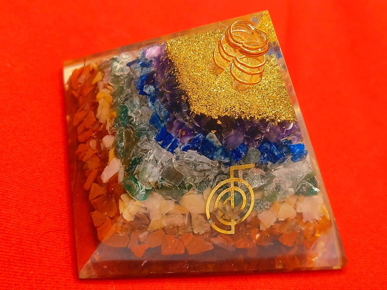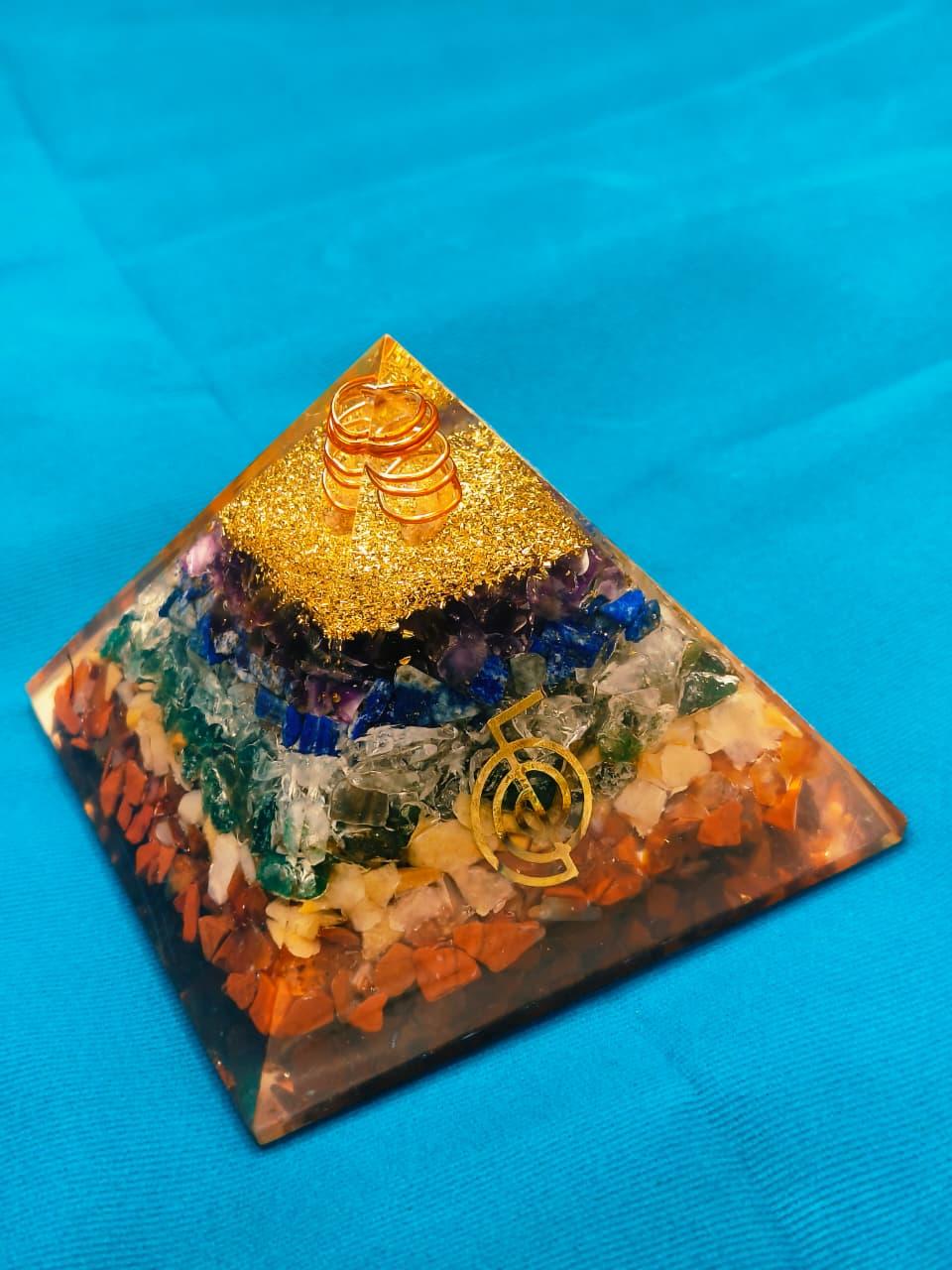 Orgone energy, revered across ancient traditions as the universal life force—also called Chi, Prana, or Ether—pulses through every living being. Our 7 Chakra Orgone Pyramid isn't just a stunning visual masterpiece; it's a potent tool designed to transmute stagnant or negative energies into vibrant, uplifting vibrations, fostering harmony across your spiritual, emotional, and physical realms.